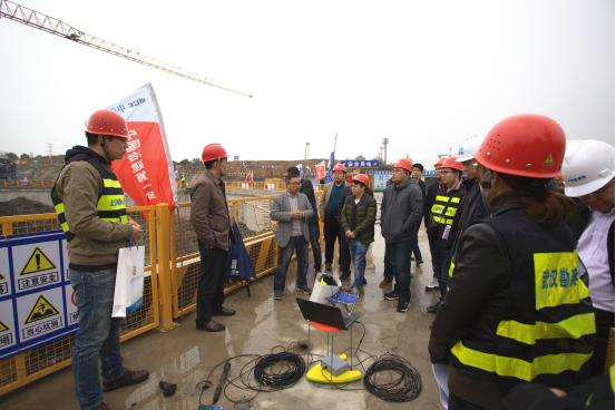 2018年11月19日下午,在公司副總經理兼總工程師官善友的帶領下,綜合部、技術質量安全部、檢測監測公司、基礎工程公司、設計中心、土工試驗室等部門技術骨干,來到北湖污水處理廠深隧泵房項目施工現場,觀摩學習了聲納滲流檢測技術,同行還有武漢地鐵集團有限公司、鐵四院、中鐵大橋局等同行業的專家和技術骨干人員。