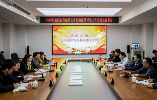 2019年1月23日下午,武漢市國土資源和規劃局在我公司組織召開了“2018年度武漢市地質災害危險性區域評估工作總結及部署會”,對地質災害危險性區域評估工作進行了總結,并對下一步工作做出部署。會議由市局地質礦產處蔡愛龍處長主持,市局田燕總工程師出席會議并講話,市測繪院、局信息中心、市勘察設計公司相關領導及項目組團隊參加了會議。